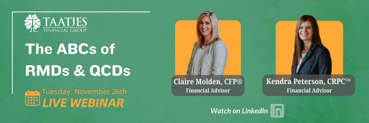 Join Claire Molden, CFP® and Kendra Peterson, CRPC™ as they delve into the essentials of Required Minimum Distributions (RMDs) and Qualified Charitable Distributions (QCDs). In this session, they will discuss their implications for your financial strategy and how you can effectively use these tools to steward your wealth.